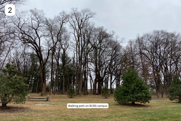 See photos 1-4. Although we did not stay and search here, I took a few photos. I don't recall where I saw (possibly on here?) someone reference the "BCBS Woods" - although there is a walking path with a wooded tree line area, I wouldn't necessarily call the area on BCBS property "woods". JMO. The more "heavily wooded" area is behind the businesses. Map 2 shows where these photos were taken.
