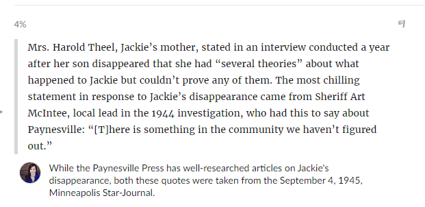 Found these quotes that an author of a book called "Bloodline" which covers Jackie's case had found in the Minneapolis Star-Journal in articles from 1945, I had not seen them linked before and I find them ominous.