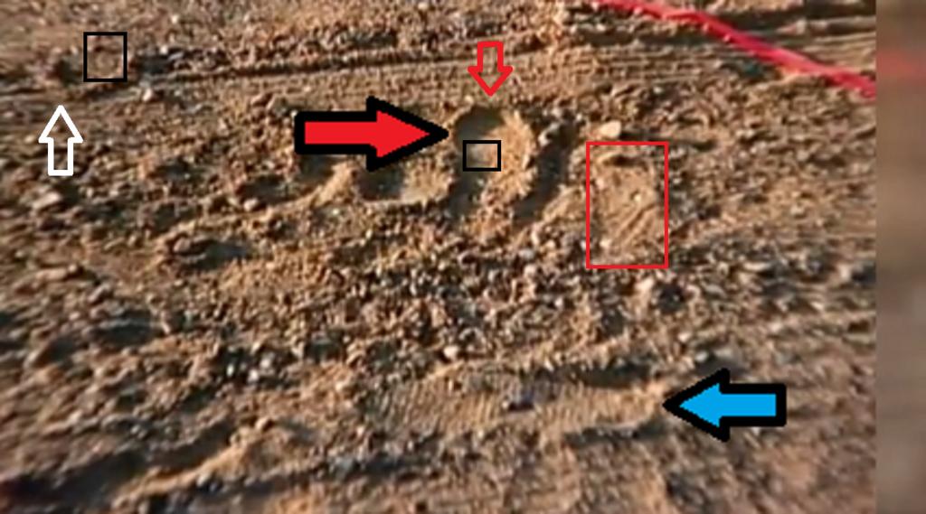 3. The white stone in front of Jacob’s footprint was rolled from the toe mound, and was only driven over by one tire.