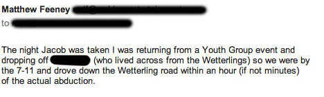 Eighteen months after Jacob’s disappearance a man was arrested for burglary in St. Cloud, Minnesota. Upon running a criminal background check, law enforcement officials discovered that the man was a previously convicted sex offender. Further, the St. Joseph police learned that in October, 1989 the man had lived closer to Jacob’s abduction site than did the Wetterling family; yet, local police had not been aware of his presence within the community. In fact, unbeknownst to local police at the time of Jacob’s disappearance, there were halfway houses in the St. Joseph area that housed sex offenders upon their release from prison. This information was disconcerting because during the search it was commonly assumed that Jacob’s kidnapper had attempted similar behavior in the past. The St. Joseph police lamented that prior knowledge of the presence of these previously convicted sex offenders may have prevented Jacob’s abduction in the first place.https://saintautumn.wordpress.com/2012/07/01/the-jacob-wetterling-abduction/