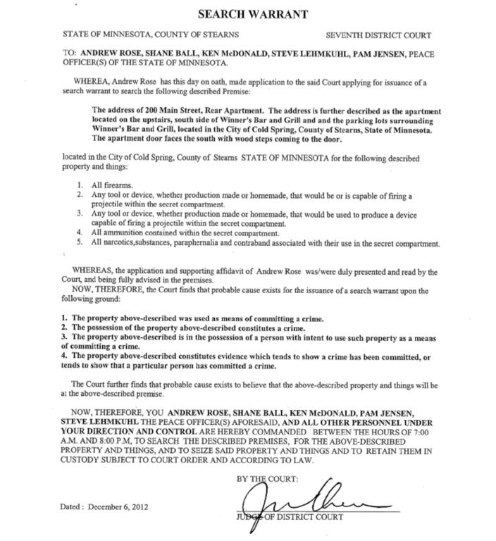 I do not see a person named in the warrant. Am I missing it?