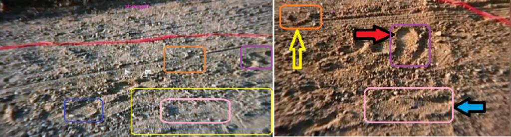 Any thoughts on direction of JW's last print Tracker? I put photos together to illustrate. Match the boxes in side by side Orange to orange, purple to purple, pink to pink. You'll see the painted circle stays on the gravel on that side being the southside.