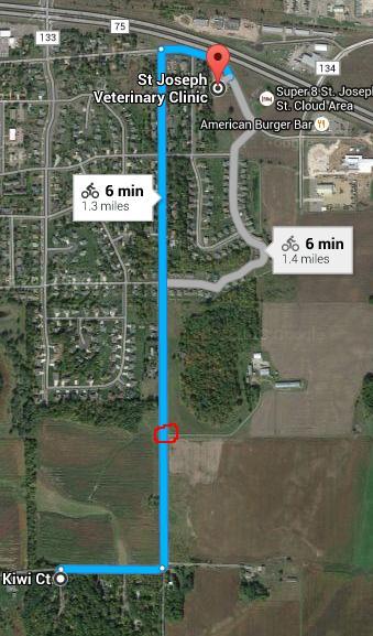 I wish I could make a Street View video of the route. Everything looks so widely spaced-out and rural.