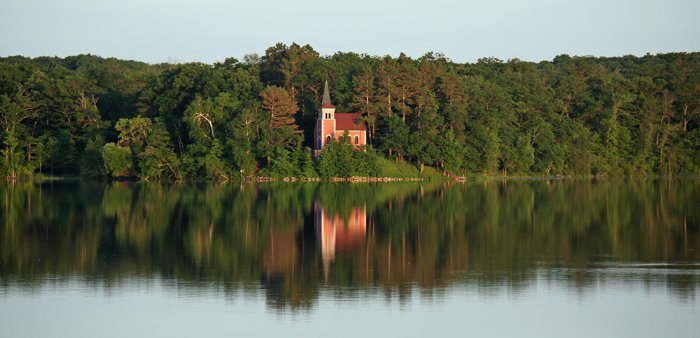 I always loved going to St. John's campus as a child. My folks used to pack a picnic and go to a couple picnic spots they had there. One was right near Lake Sagatagan and my dad would walk with us around the lake through the woods to the Stella Maris chapel. It was beautiful and peaceful there. The chapel seemed so isolated and mysterious to me. Here is a picture of it from across the lake.