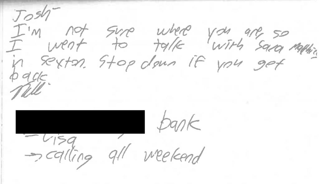 - A male got up and left, not sure if it was Josh (Investigator. Struffert)
