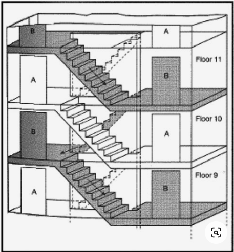 great way of explaining.that was where I was heading with this....it would be beneficial toknow if that staircase was blocked off or you could hop over.id like to think it was blocked off. crazy design!!