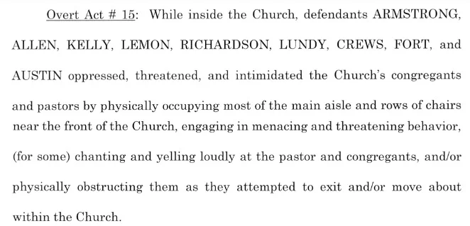 thank you for sharing the indictment. I think the federal prosecution may have difficulty proving DL physically intimidated, threatened, or trapped anyone by blocking their exit. JMO.