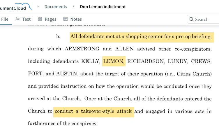 I believe (based on what I know) and the grand jury believed based on all the evidence they had available to them, that Don Lemon was indeed with the protestors inside the church, engaging in utterly inexcusable behavior, violating federal law.