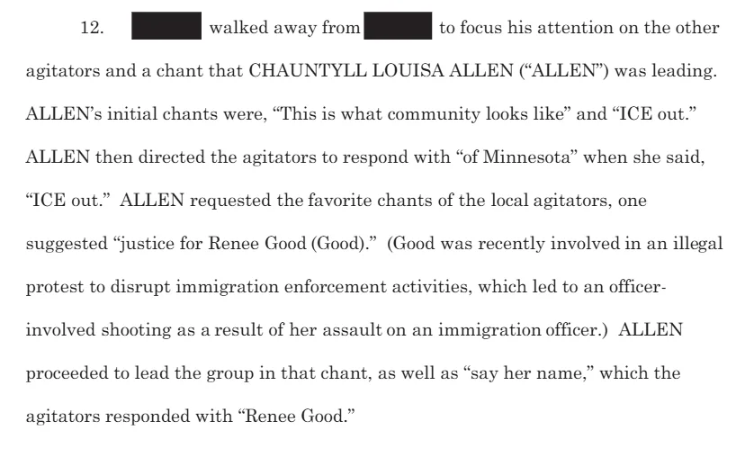 I see the person who prepared/signed the affidavit has opinions on the Renee Good incident. MOO RG was not involved in an illegal protest.