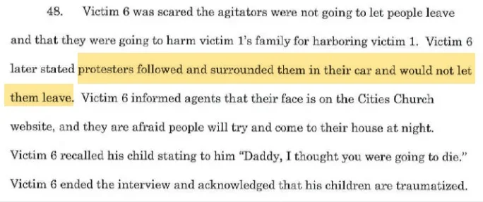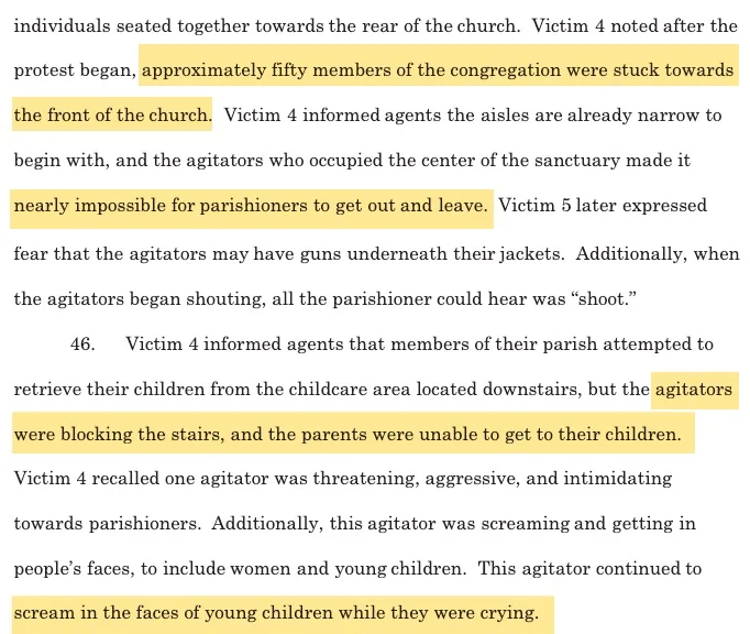 Regarding the requests for video proof of DL's preventing ( obstructing), we collectively here, have only seen a few snaps of inside the church. One, from DL himself, and another from Kelly ( another arrestee). There is, according to the FBI affidavit , additional footage from the church, (who was live videoing the service ), as well as private church members who had pulled out their phones to record. We do not have access to those, but the court will. The claims may have come from those?