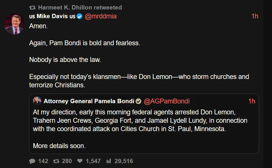 “Once the protest started in the church, we did an act of journalism, which was report on it and talk to the people involved, including the pastor, members of the church and members of the organization,” Mr. Lemon said in a recent video. “That’s it. That’s called journalism.”