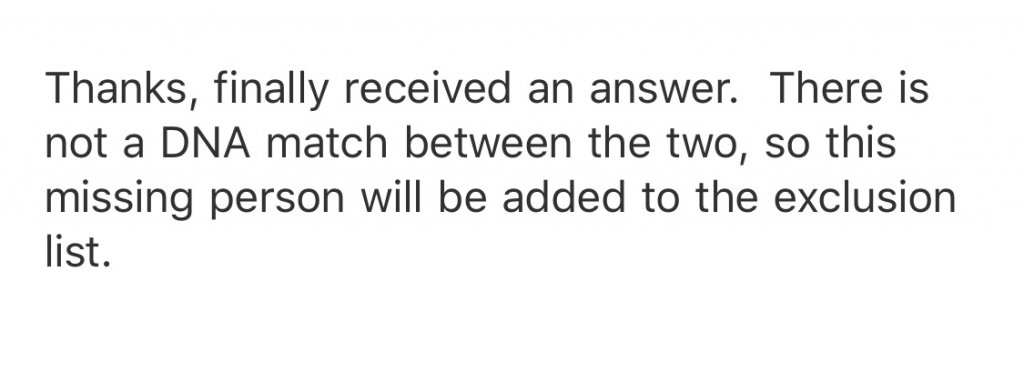 Here is a list of exclusions from Namus: