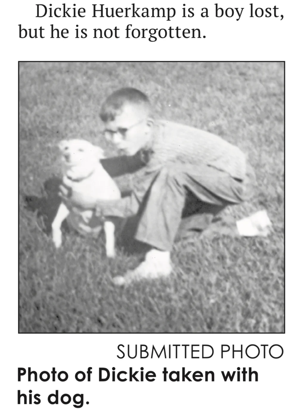 The 60-year anniversary article in the Maple River Messenger is perhaps the most comprehensive report on his disappearance to date. Hopefully, it will generate community interest and awareness that Dickie has not been forgotten.
