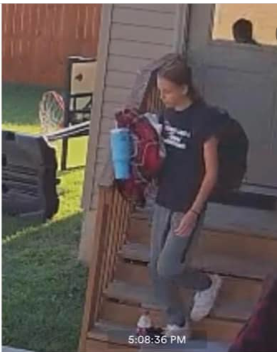 The article above says that she was last seen around 5 pm and she "was last seen wearing a black t-shirt, gray sweatpants and white tennis shoes. She was also carrying a black backpack". So MOO it looks like the picture in the flyer was actually when she left the house: