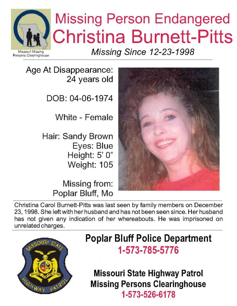 Almost two years after she was last seen by her family, police say Christina Pitts was reported missing. That was in 2000. Now, Poplar Bluff investigators believe someone around the area in the late 1990s knows where Christina might be.