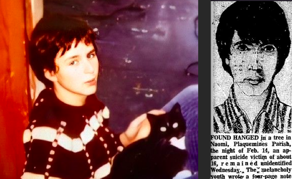 Here is the link if you have not made your way: LA - LA - Belle Chasse, WhtMale 16-17, UP88342, hanged, suicide note, Feb'75 #2