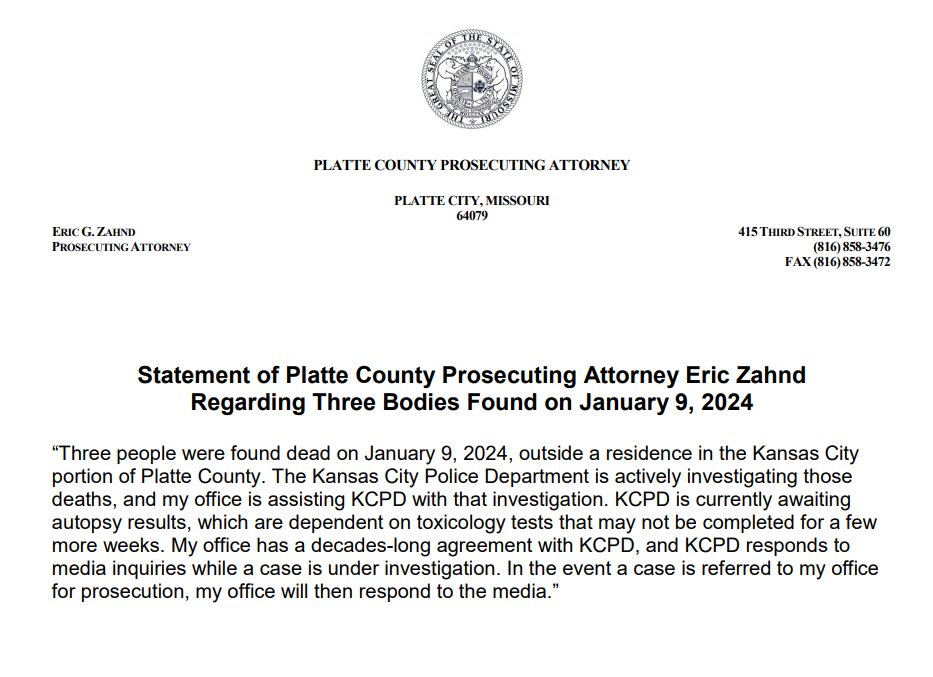 The families of the #KansasCity3 are meeting with the Platte County prosecutor today to discuss the ongoing investigation and possibility of criminal prosecution. Family sources tell me they are frustrated with the pace of the KCPD investigation.