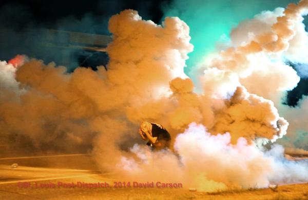 Photos: Police fire teargas at @ajam reporters in #Ferguson alj.am/1pPxEFa pic.twitter.com/4ZfU3XuObr