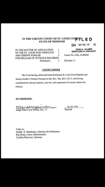 StLCo Judge just denied motion to release Michael Brown's juvenile records. #Ferguson