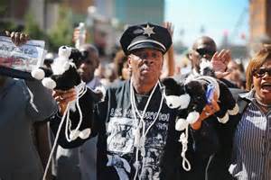 Brother Shahid, as he is known in the community, has protested in Ferguson brandishing stuffed dogs, chains, a noose, a whip and wearing a black cloak and black police hat. He explained his choice of symbols.
