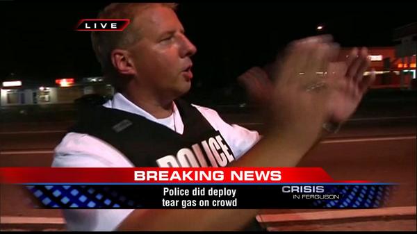 Police moving north on W. Florissant. Order media into designated area. #ferguson