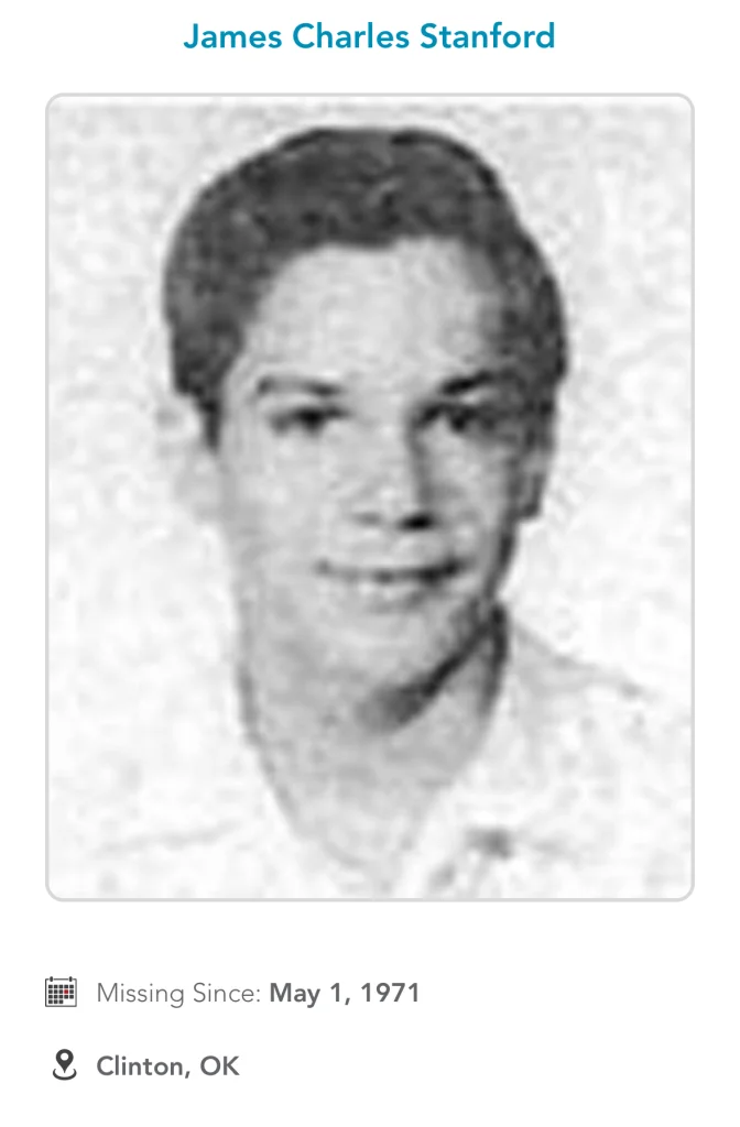 James Charles Stanford has been missing since 1972 and while he’s been posted about (once) no one made this promising connection.