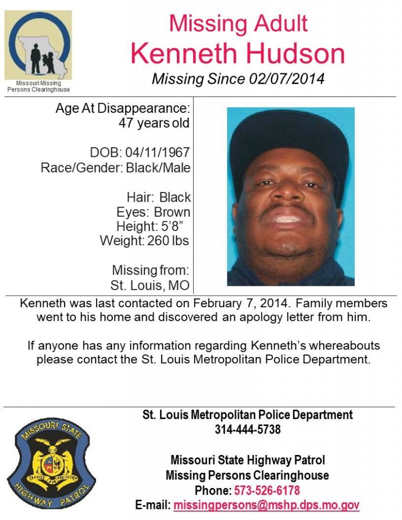 Hudson was last seen in St. Louis, Missouri on February 7, 2014. He left, supposedly to go to the gas station, and never returned. When his family went to his home, they found an apology letter from him. He has never been heard from again. Few details are available in his case.