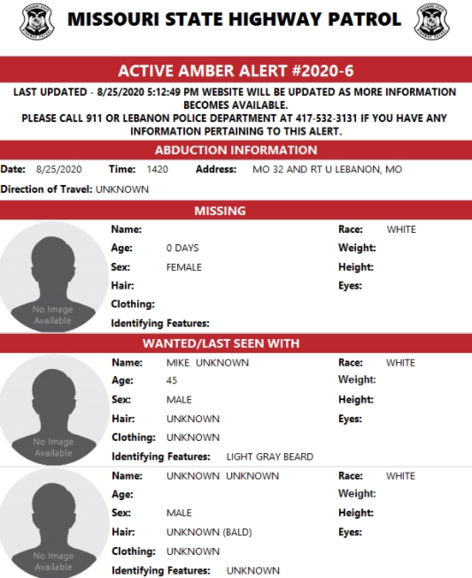 Missouri Amber Alert: Newborn girl missing in Laclede County