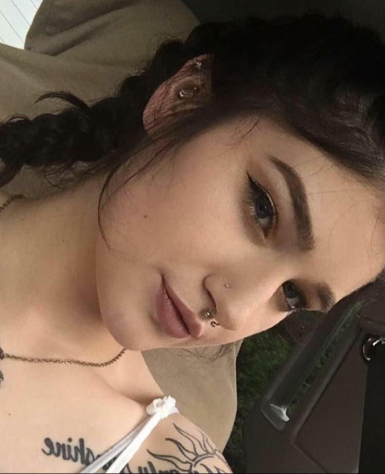She was last seen wearing black and white vertical striped halter top with spaghetti straps and a blue jean skirt and only wearing one shoe. Her nose is pierced twice (septum and right nostril). She has a tattoo on her right upper arm of a sun and flowers with the words "My Only Sunshine"****