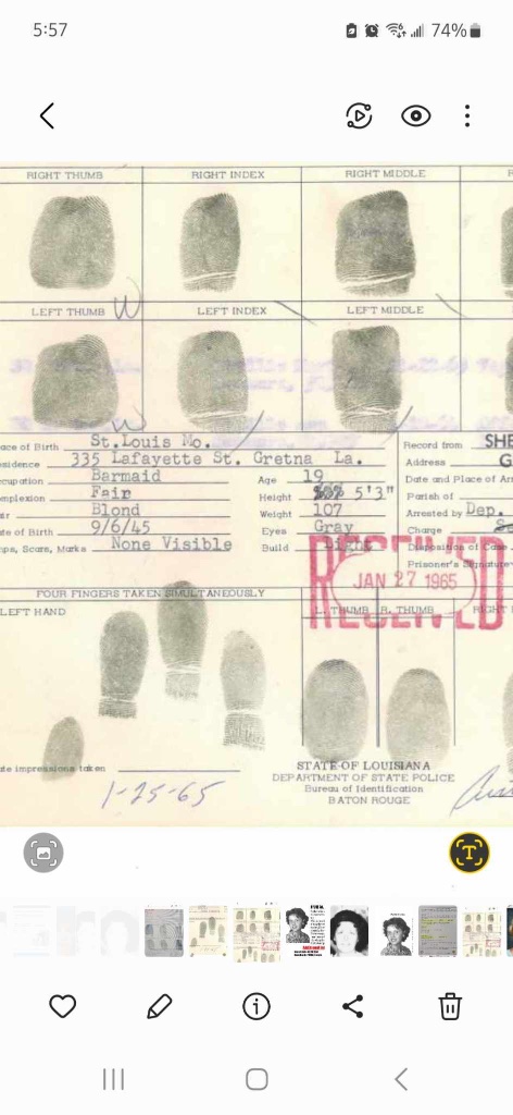 I spoke with the Gretna Historical Society today. So on Phyliss arrest record it states that her residence is at 335 Lafeyette Avenue. In the mid 60s this location was called Buellers Palace aka a Gentlemens Club and across from it was a hardware store. Well to the right of hardware store was a place called Jenes Palace. I inquired further about these locations and I was told that this area was a rough and dangerous area. It is my belief that Phyliss likely lived at where she worked. Additionally, I sent the Jane Doe 6942 to Donna and shes going to email Namus for comparison.