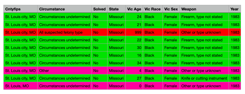 The homes in this area on average were built before 1930 and in particular, this area is known to have a great many mansions and large historical buildings. Some well cared for but most in disrepair. It is important to note that St. Louis has a particular abandoned property problem. It causes crime to sky-rocket and though non-so as gruesome similar crimes have happened in these abandoned buildings. It is sadly very common to find raped and tied up women in these buildings. Dog fights, homeless activities, and other crimes. The area was used as a dumping ground for trash and bodies.