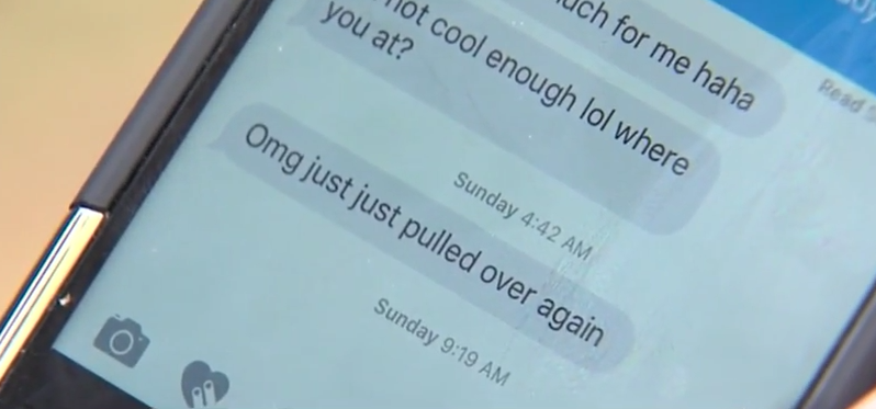 The 9:19am text was a copy of her girlfriend's cellphone who happened to be in Vegas that day.