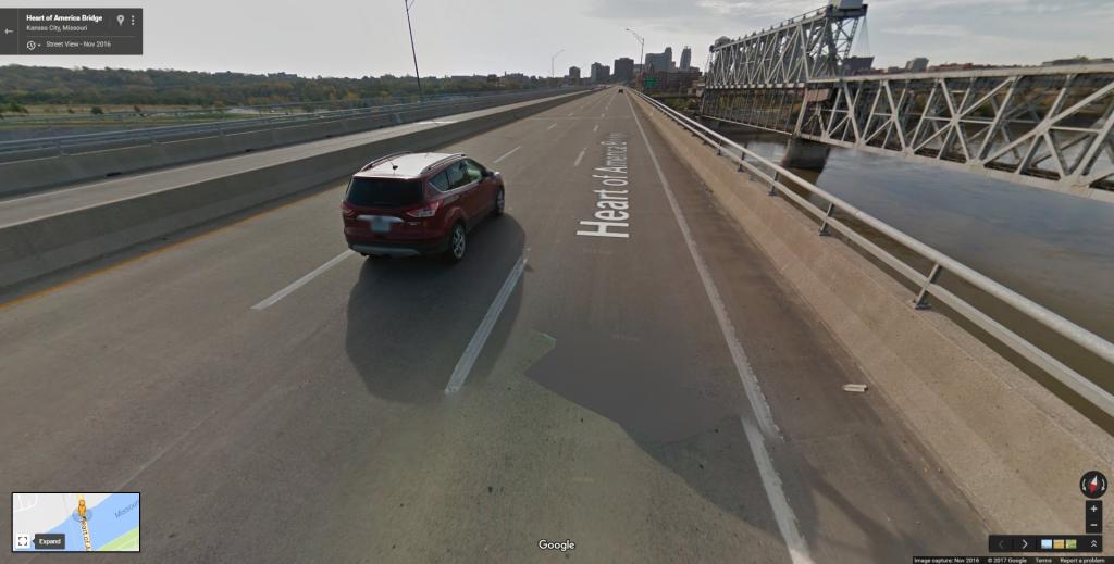 I don't know a whole lot about the Missouri river in this area, or the depth of it, but I do know a lot about physics and inertia. We all know that after she left the store she headed south in the direction of home. We also know she was texting a friend. We also know that texting and driving is extremely dangerous. We also know that bridges tend to freeze and ice up faster than land based roads. Now...................it may be possible that she got to fishtailing on the bridge, over corrected and rolled her car right over the side of the guardrail. It wouldn't have rolled so much as it would have bounced, especially if it happened to get turned sideways. I've included a screenshot of the bridge in the direction she would have been traveling to get home. I would guess that the guardrail is between 42" and 48" high. Under normal conditions, this would be a hard feat to accomplish obviously. But I'm not talking about normal conditions here, I'm talking about a freak accident with all of the conditions lining up perfectly to create the perfect storm. If her car got to rolling sideways and was launched into the air during that roll, it's possible she could have gone right over the side of the bridge and left very little sign of it. Note: The guardrail on the northbound side is higher than the guardrail on the southbound side, she would have been traveling south next to the lower rail.
