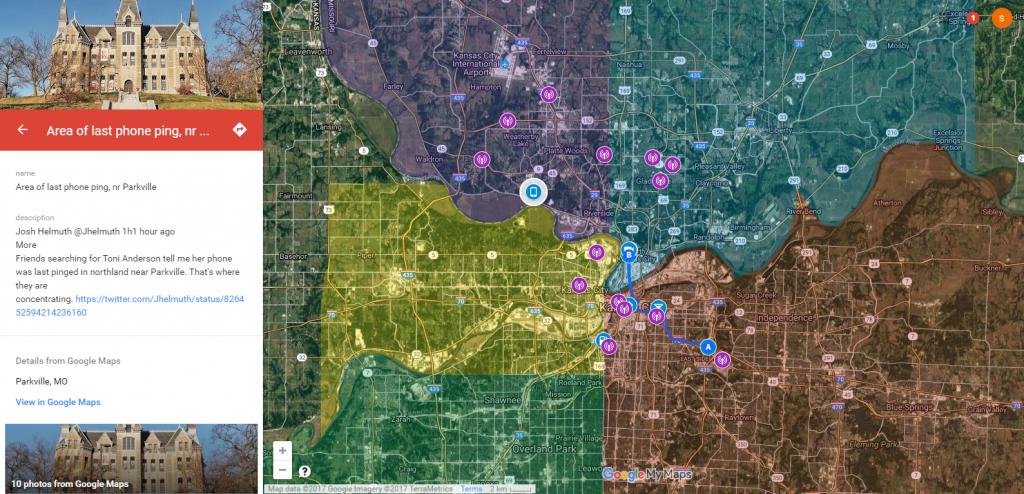 In fact, where she gassed up could be considered "northland near Parkville." Yeah, it's in North Kansas city, but it's also in northland and it's only 5 miles to Parkville. According to the case map, there are maybe 5 towers around Parkville. It would be useful to know which one. The southern tower could mean the phone never moved from North Kansas City.