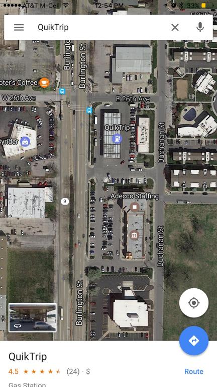 4:25am She was pulled over at 4:25 a.m. by a North Kansas City, Missouri, police officer — a separate jurisdiction from Kansas City — for a routine traffic stop for an illegal lane change, which resulted in a warning. Traffic stop lasted about 7 minutes. The Officer saw her pull into QuickTrip at 2525 Burlington to pump gas. (QT ATM near 26th and Burlington along 9 Highway) (Police say she was alone when she was pulled over and they watched her pull into QuikTrip to pump gas.) (from link: