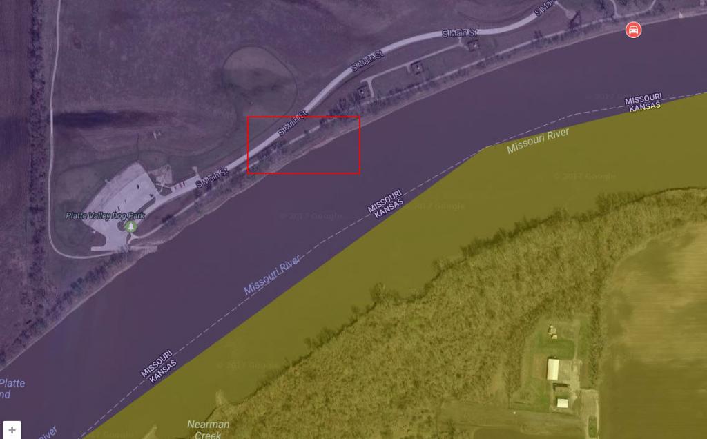 I believe the area inside the red box down here is where it's at. I am basing this off of the helicopter picture showing the walking path that's in a loop on the side of the bank they're working from and the covered area and other buildings on the opposite bank, when the helicopter swung around and videoed some official vehicles there.