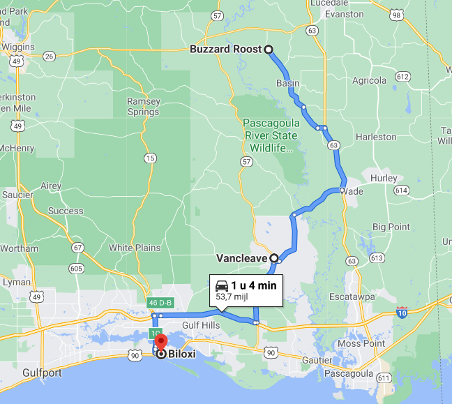 Location of Discovery: Vancleave, Jackson County, Mississippi (off Ward Bayou Road)