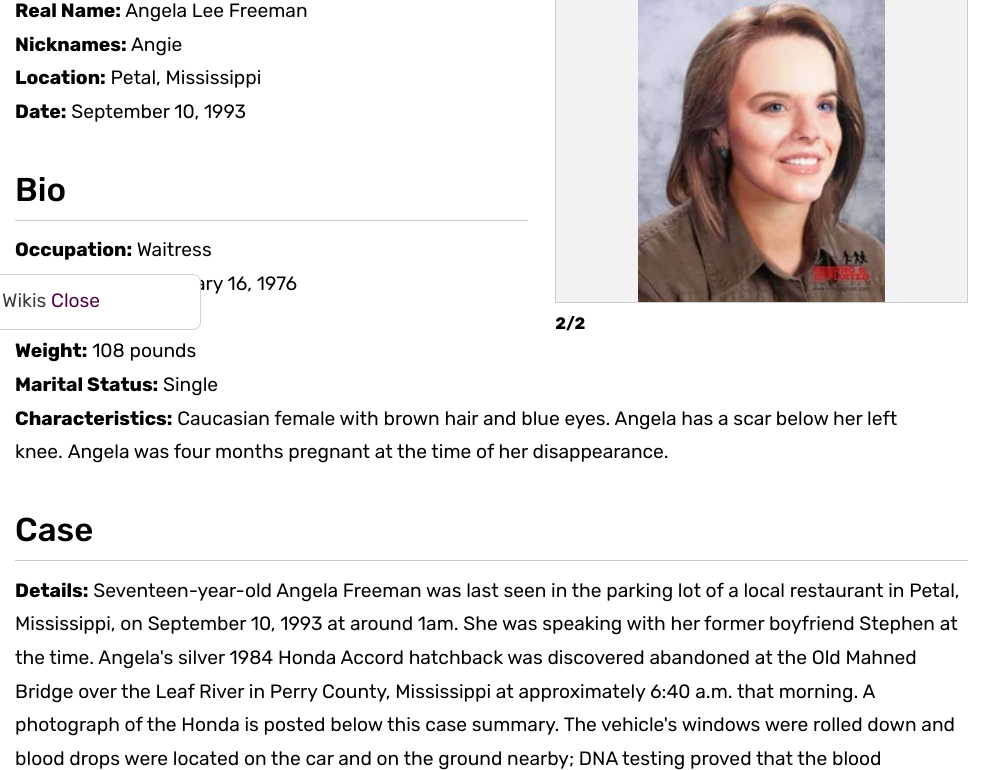 Thank you so much for this. This is the case that started my interest in true crime, due to being one of the journalism students who wrote the Hattiesburg American article you posted. I had no idea it was still out there somewhere, but I still check on Angela's case often.