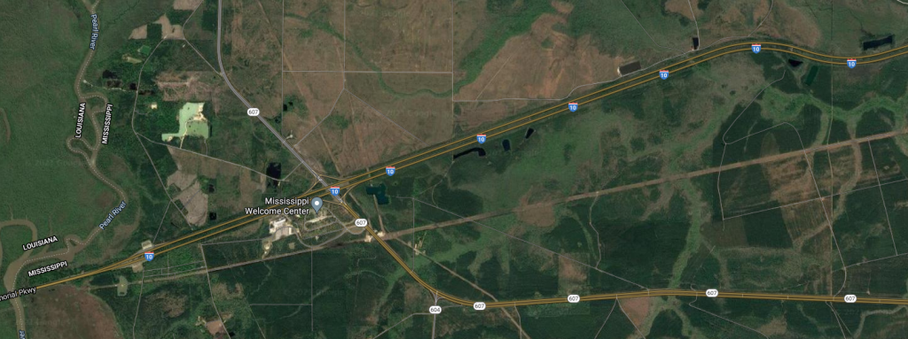 This area along I-10 is heavily wooded remote and doesn't appear to have commercial establishments with the exception of the Welcome Center for miles...
