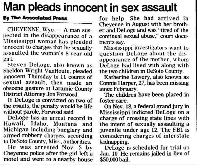 But DeLoge, whom investigators have also identified as Sheldon Van Houte, was convicted in 2000 of repeatedly raping Lowery's 8-year-old daughter.