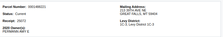 Here is the property tax record from Cascade County (I have included a screenshot of the information there)
