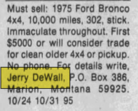 DeWall was last seen in Kalispell, Montana on January 26, 1977. He has never been heard from again. Few details are available in his case.