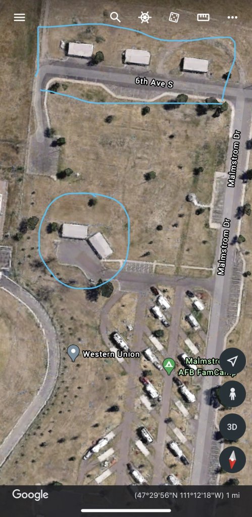 View of what’s on Malmstrom Dr (AFB Family Camp)..nothing too much