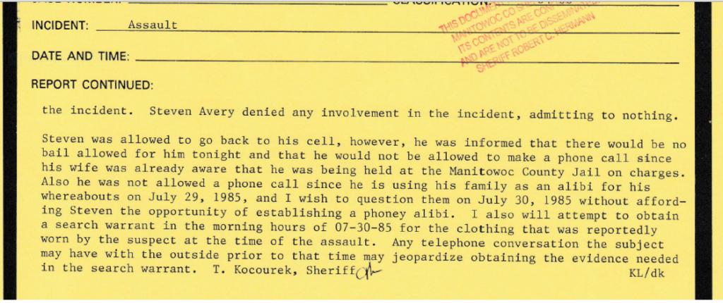 MTSO incident report 1985 PB Incident report: http://www.stevenaverycase.org/wp-content/uploads/2016/03/MTSO-PB-Incident-Report-1985.pdf