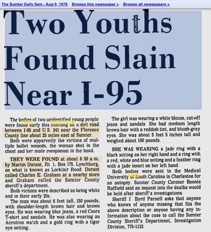 Maybe they evacuated from Myrtle Beach due to the hurricane. Hitching, or catching a lift inland with someone who lived in the Latta, SC area, a 2.5 hour ride, would seem like a lucky break.