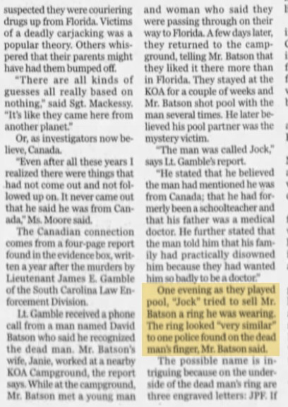 Also, it bothers me that they had no ID on them when found... AND when Verna went to do some of her own investigation, the KOA records had been destroyed in a house fire. Just too coincidental for me.