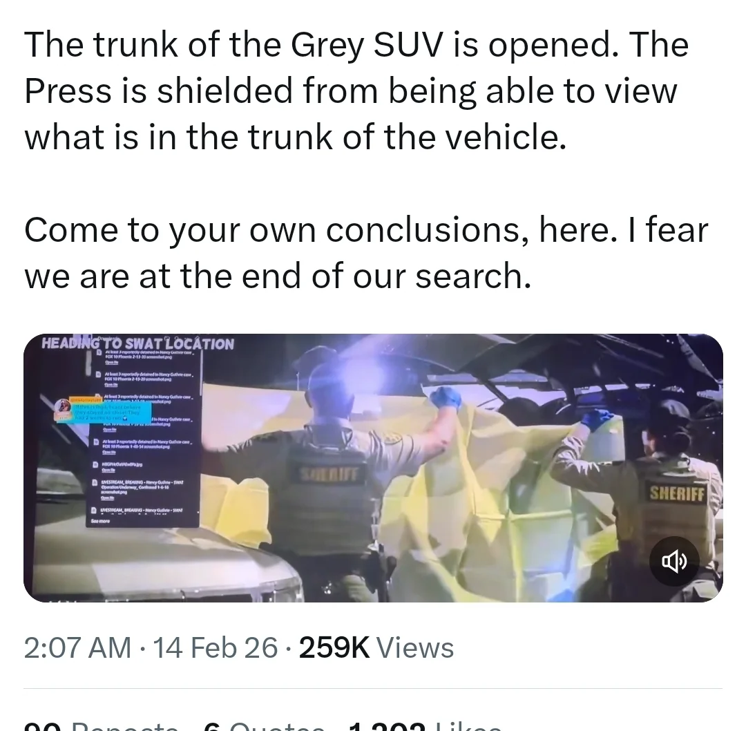 I'm thrilled it appears some folks have been apprehended (finally), but like everyone else, I'm anxiously waiting for news that they've found Nancy. As others have said, she reminds us of our own loved ones, and seeing closure for the Guthrie family will be a bit of closure for all of us. jmo