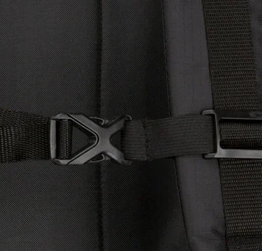 I think that's the "female" side of the undone buckle on the chest strap.I just downloaded the pic from the FBI website, you can definitely see it in this pic as well. I added the yellow circle.