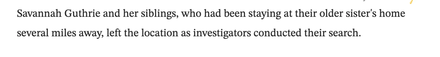 AZ Nancy Guthrie, 84, (mother of TODAY Show host Savannah Guthrie) missing - last seen in the Catalina foothills area on Jan 31, 2026