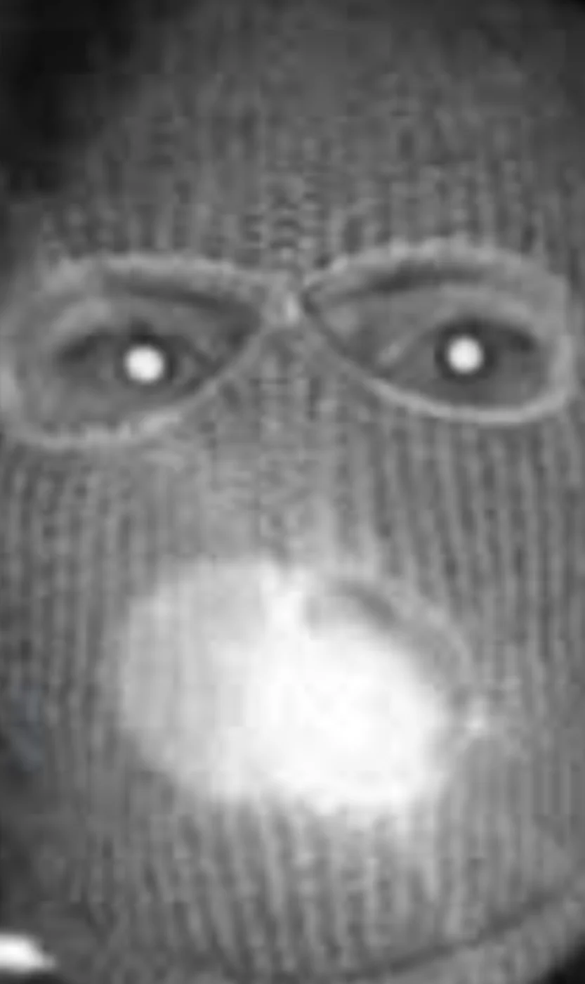 Light on Nest doorbell?????could the suspect have a grill or metallic tooth? i don't think there is a flashlight in his mouth, but something in his mouth is causing the light to reflect. imo it's a male.